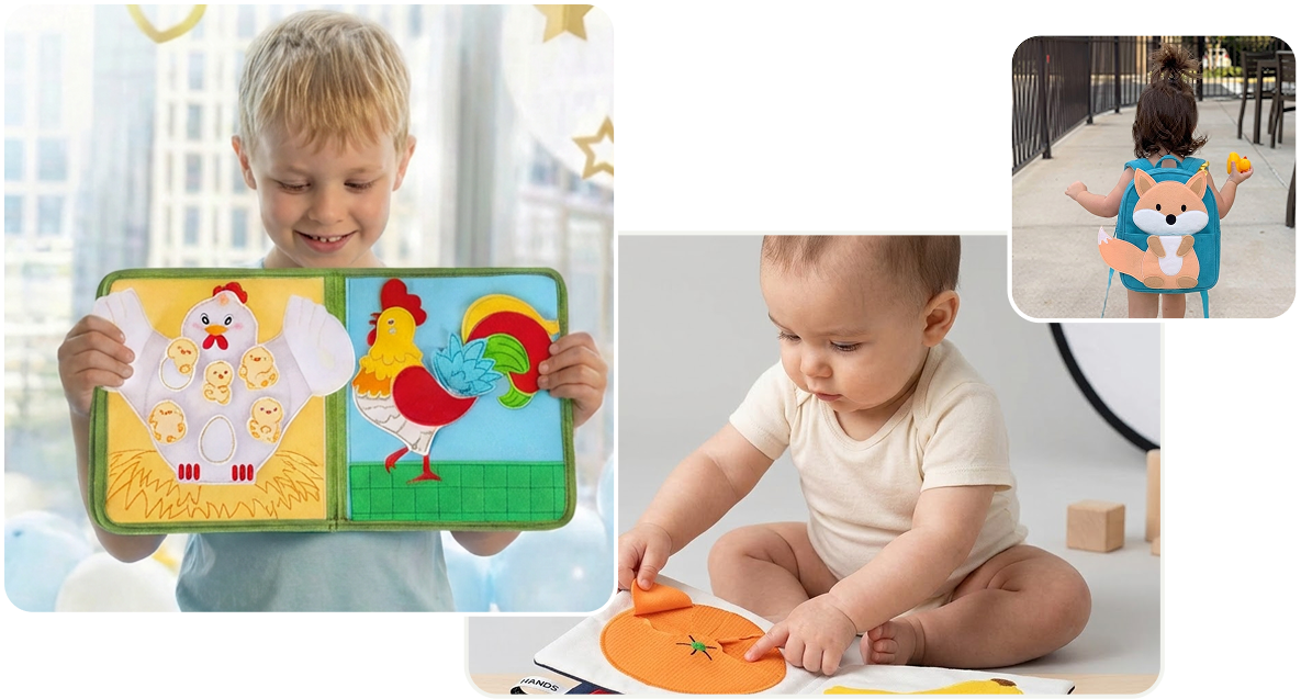 Preisgekrönte Montessori Quiet Books, die Spielen mit Lernen verbinden - für ruhiges, selbstständiges Entdecken.